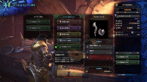 こんにちわ♪ 独歩ですΨ(`◇´)Ψ 「グランドバロングⅡ」と間違えて「マスターバング」を作成&カスタム強化し、ちょっと凹んでる独歩です(*´Д`) どおりで全然麻痺しないわけだ… わざわざ金の竜人手形2枚使って宝玉まで手に入れたのに…名前紛らわしいっちゅう…