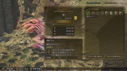 こんばんわ♪ 独歩ですΨ(`◇´)Ψ Sランクきたー!!( ;∀;) 実装から1週間、ちょっと無理かな〜と思っていたタマミツネのチャレンジクエスト、なんとかSランク達成です♪✌️ 最終的にはハンマーでとりました。Sランクまでの記録です。 ①ライトボウガン 武器縛…